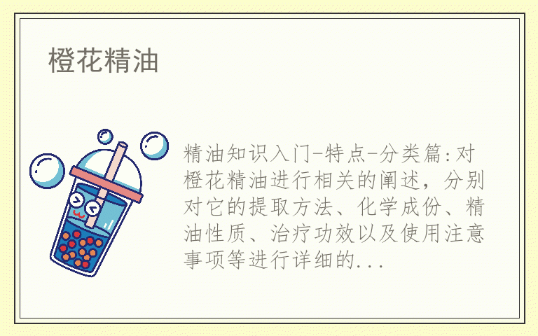 精油知识入门-特点-分类篇:对橙花精油进行相关的阐述,分别对它的提取方法、化学成份、精油性质、治疗功效以及使用注意事项等进行详细的介绍。